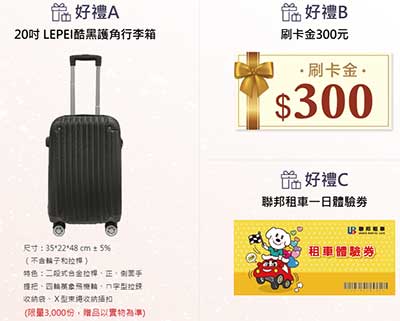新戶核卡三個月內,保費單筆滿15,000元(含)以上,且申辦電子化帳單,即贈500元刷卡金