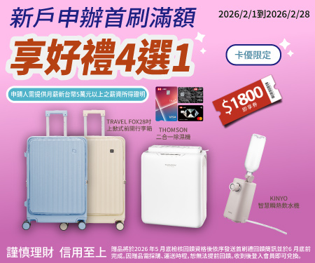 活動期間:2026/01/01~2026/03/31申辦且於2026/4/24(含)前核卡