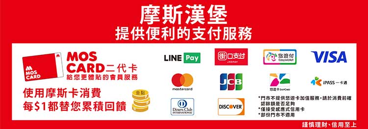 「摩斯卡」有分「MOS CARD二代卡」、「MOS CARD行動卡」,「MOS CARD二代卡」可以重複儲值,適合喜歡實體卡片的朋友;而「MOS CARD行動卡」同時搭配線上註冊,以及結合手機訂餐APP_MOS Order,是一款無實體卡片的預付儲值卡,可以進行手機行動消費、行動儲值、線上支付及線上信用卡儲值便利服務等功能。