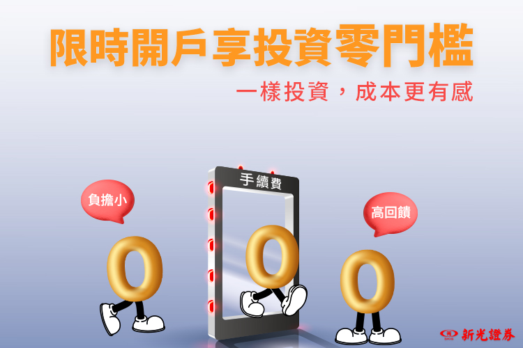 2026年起新開立新光證券享手續費震撼價+新開戶禮$3,000元手續費抵用金,不論買一張或一股皆可折抵,交易幾乎免手續費;還有超方便的資金管理帳戶(分戶帳),透過線上開戶將多個戶頭的功能整併在一個帳戶之中,讓自今使用效率更高。開戶就能用-最懂投資人的下單神器「富貴角XQ」,8大功能看盤下單一次搞定!新光證券開戶零門檻,若還沒有證券戶,新光證券絕對是你首選。