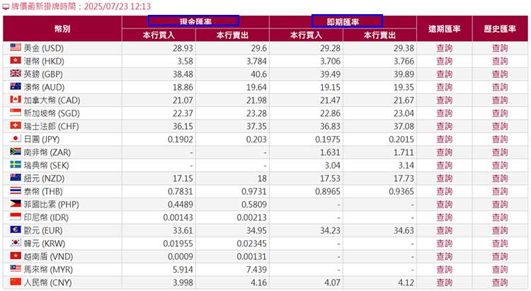 即期匯率則是將帳戶中所持有的新臺幣或外幣直接進行轉換,所使用的匯率價格,通常為投資外幣使用。