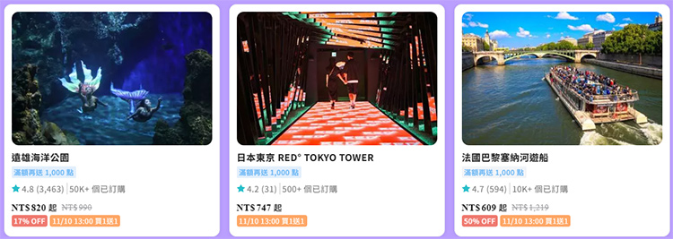 會員日 x 雙11狂歡 | 搶人氣景點 買1送1