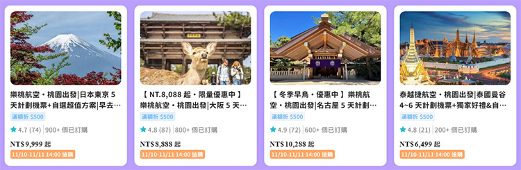 會員日 x 雙11狂歡 | 搶日韓泰機票 滿額折 $500