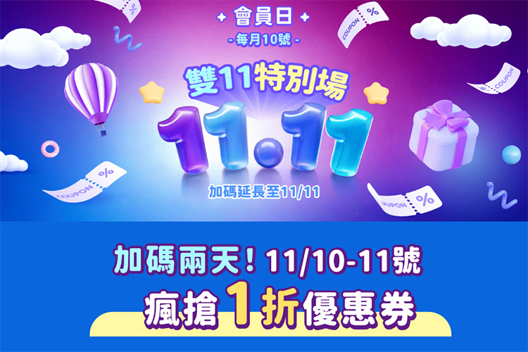 👉1 / 7 折優惠碼,11/10-11/11 中午 12 點準時開搶