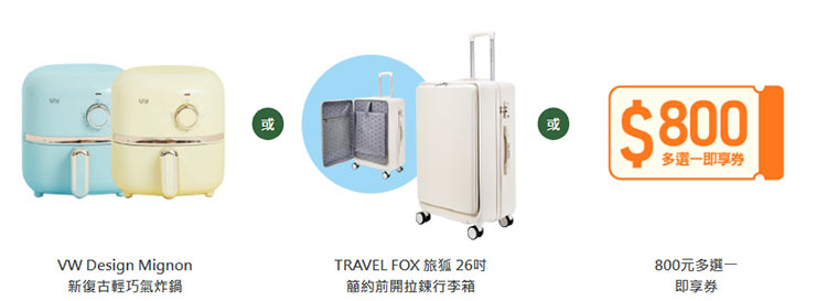 好禮三 800元多選一即享券