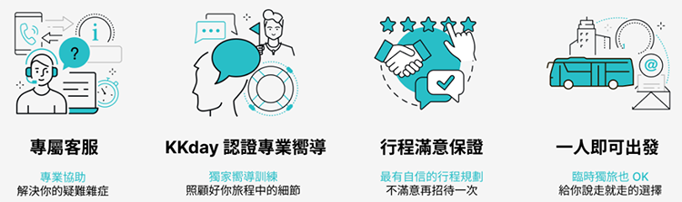 說走就走!一人就可出團~不管你是獨旅、家族旅遊、員工旅遊的自由行行程,不用花時間、心力規劃了, 「KKday專屬團」通通幫你搞定!
