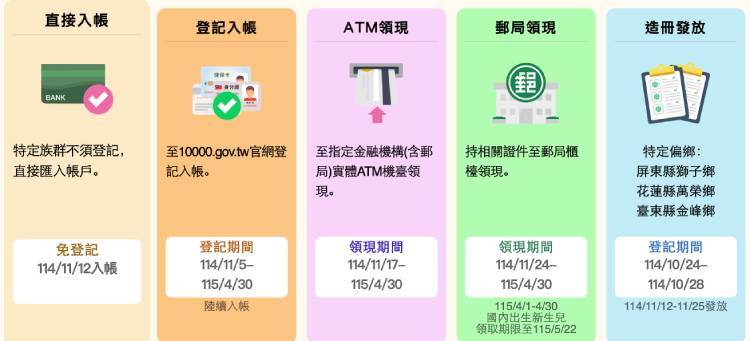 民眾關心的普發現金1萬元開放登記了!財政部提供「登記入帳、ATM領現、郵局領現、直接入帳、造冊發放」五種領取方式;預計425萬人可優先領到,就是採取「直接入帳」,可最先拿1萬元。