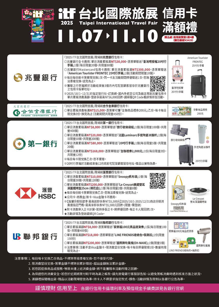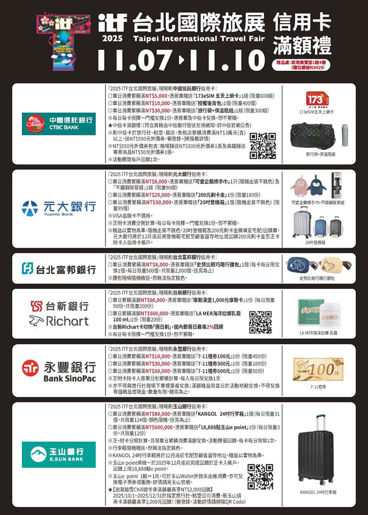 以下卡優小編幫大家整理了「2025 ITF台北國際旅展」活動資訊、展覽優惠…等,趕快把握這次的旅展吧!