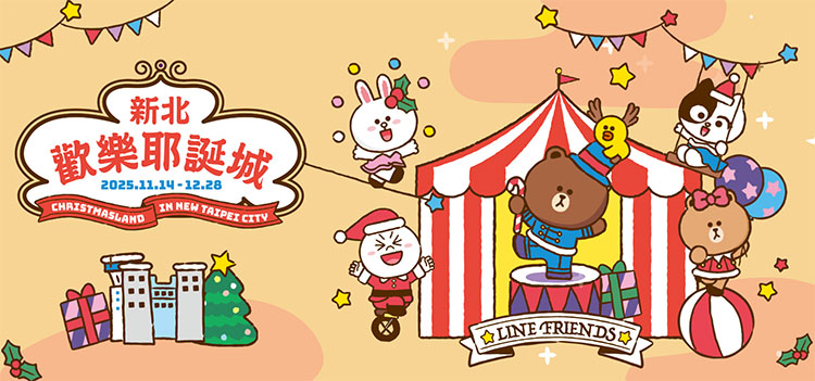 新北市一年一度的盛事「2025新北耶誕城」將於11月14日(五)盛大展開,連續 45 天營造繽紛璀璨的耶誕節慶氛圍,今年(2025)以「馬戲嘉年華」為主題,與全球知名的「LINE FRIENDS & LINE FRIENDS minini」角色 IP 品牌合作,打造可愛趣味的各式裝置,主燈以「歡樂馬戲棚」為主題,結合燈光、音樂與動態機械,打造出夢幻的主燈秀。除了主燈與光雕秀外,還有德國耶誕市集、巨星演唱會、童樂嘉年華等活動輪番登場,以下小編會介紹有哪些必拍景點及活動。