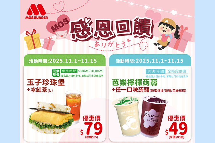 摩斯漢堡感恩回饋,2025/11/1~11/30推出限時優惠,美味暖心登場!