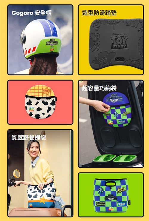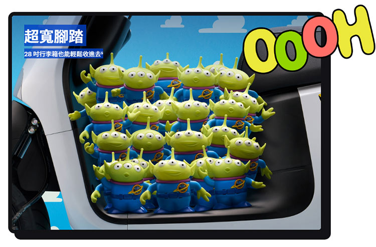 早鳥好禮: 即日起至3/29,購車加1元即可獲得價值$3,860 的「玩具總動員配件大禮包」(含主題安全帽、造型防滑踏墊、巧納袋)。