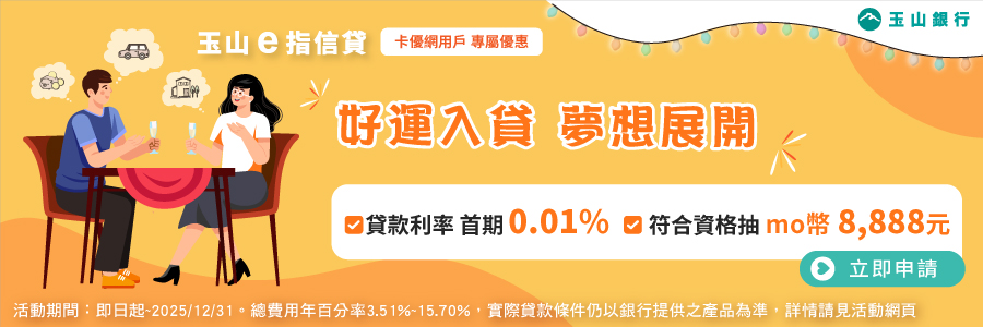 ▶▶玉山e指信貸》首期貸款利率0.12%,最高可貸300萬元再抽Apple iPad