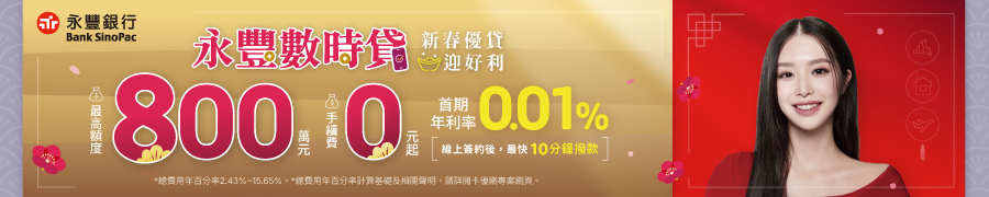 ✔貸款年利率:首期優惠利率 0.01% 起