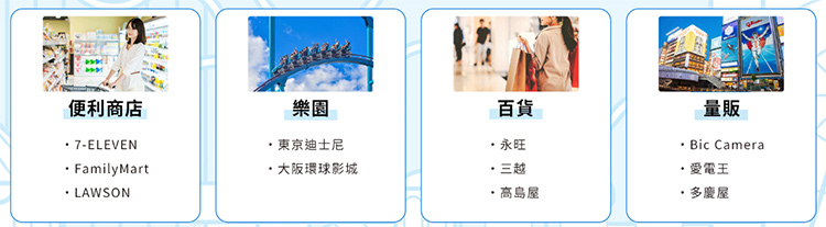 ※指定日系名店:DAISO大創百貨、Standard Products、THREEPPY、日藥本舖、松本清、三友藥妝Tomod's、HANDS 台隆手創館、札幌藥妝、TSUTAYA BOOKSTORE、UNIQLO、GU