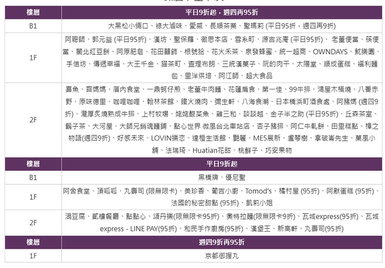 2.微風集團美食購物9折起