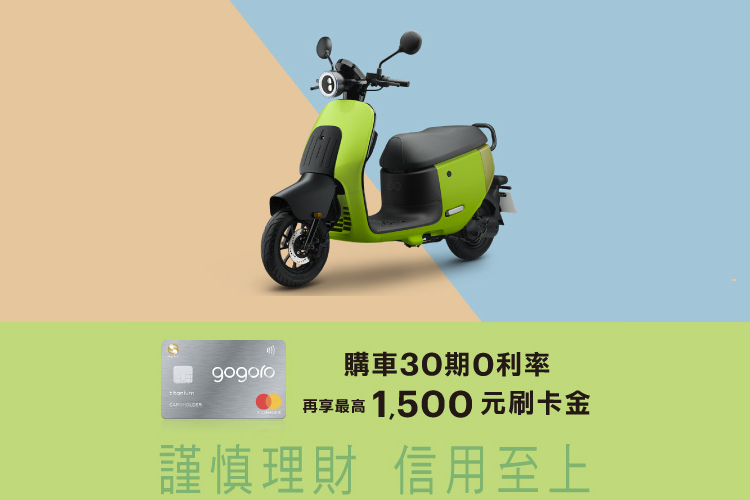 ※Gogoro聯名卡購買Gogoro享全車系分12期/24期/30期0利率優惠!