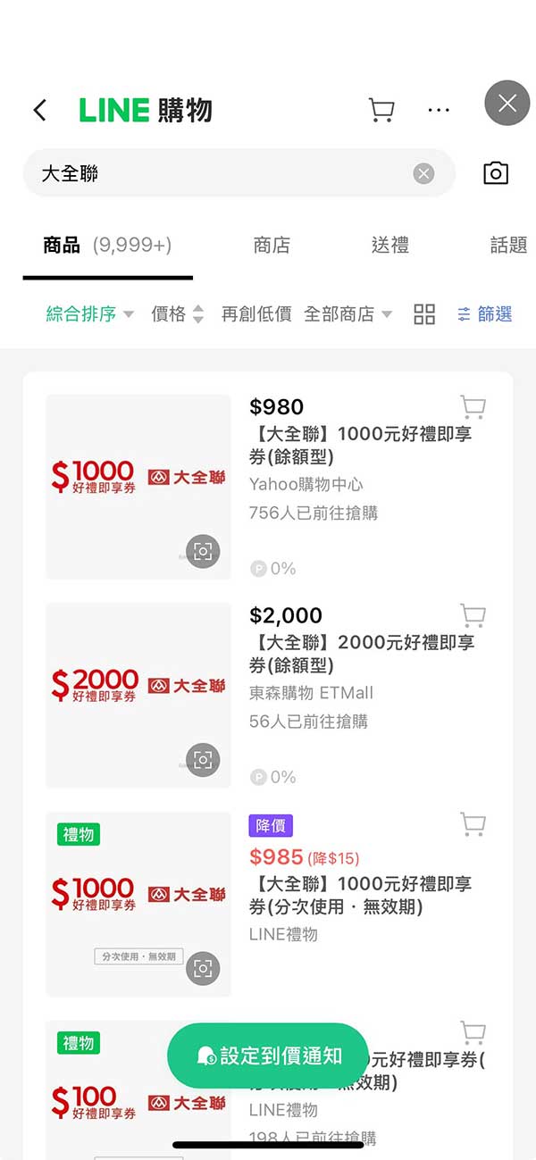 雖然大全聯取消LINE Pay支付工具,小編教大家一招可以用LINE Pay賺回饋的方式~可以先上LINE購物買大全聯即享券,再選LINE Pay回饋高的信用卡,除了即享券本身有折扣之外,搭配LINE Pay回饋高的卡片讓你享雙重回饋 !
