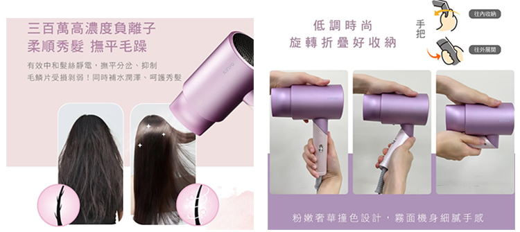 .300萬高濃度負離子,撫平毛躁,同時補水潤澤。