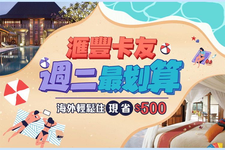 2025/09/02 ~ 2025/12/30 每週二持滙豐銀行信用卡,於易遊網海外訂房刷卡消費滿6,000元,並輸入折扣碼【hsbc500】,享現折500元(每週限量50份/每週二上午10:00開放使用)。