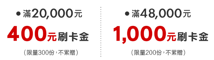 ※須登錄,不可跨門檻重複回饋,每月每戶擇優回饋一次上限1,000元。