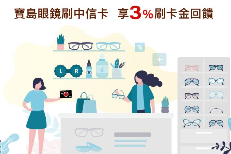 2025/10/01 ~ 2025/12/31持中國信託信用卡/簽帳金融卡至寶島眼鏡實體門市,單月累計消費滿3,000元享3%刷卡金回饋。