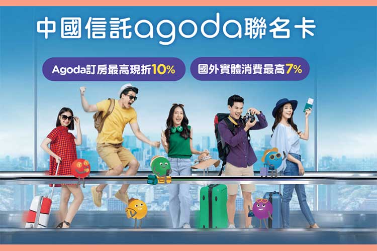 2026/1/1~2026/6/30新戶申辦中國信託Agoda聯名卡,於核卡日起30天內,Agoda官網累計刷卡消費達NT3,500元(含)以上享新戶禮800 A金。