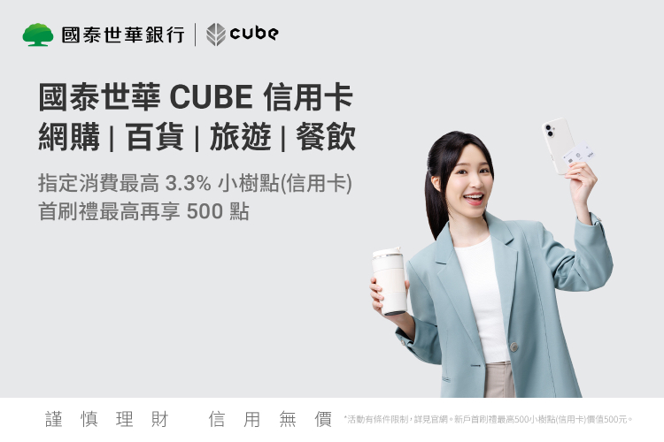 國泰世華CUBE信用卡2026年在權益通路上延續「玩數位、樂饗購、趣旅行、集精選、慶生月(限當月壽星)」等五大權益,同時針對熱門消費場域增加更多新通路,陸續新增了「充電停車」、「親子育兒」等熱門通路,適用情境、回饋通路非常廣泛,還有追星族最愛的獨家優先購票機會,堪稱是目前人手一張的「國民神卡」,也是小編目前最常刷的一張信用卡。以下小編來介紹這張「國民神卡」如何聰明消費賺高回饋!