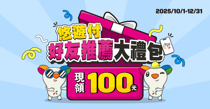 悠遊付會員透過「推薦好友」活動領好康!推薦人只要分享個人專屬推薦碼並成功邀請親友註冊成為悠遊付新會員,即可立即獲得100元現金回饋券(內含50元現金回饋券2張),推薦次數無上限。