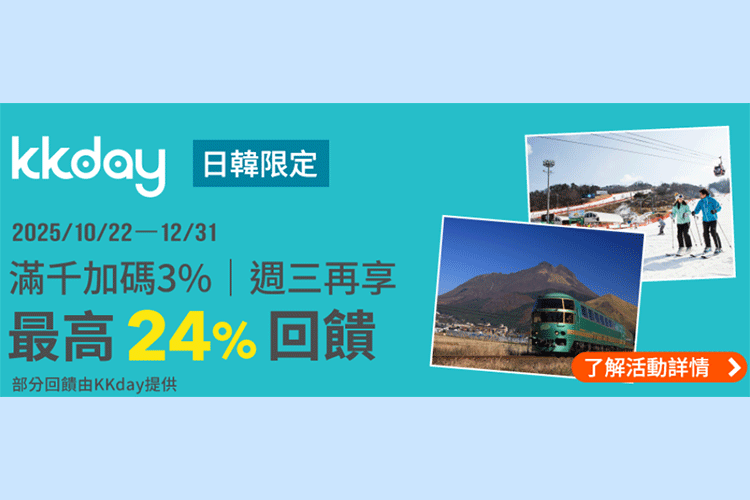 主活動:KKday日韓指定商品滿千享3%全點回饋
