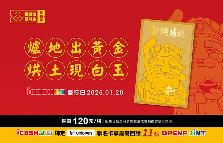 新年想求財、求平安?這張卡一定要收!「烘爐地-金運當頭icash2.0」以知名求財聖地烘爐地為主題,卡面以Q版土地公搭配金色視覺設計,整體氛圍尊貴又不失可愛,最大特色在於每一張卡片都實際於烘爐地完成過爐祈福儀式,象徵財運亨通、事事順利!隨卡更貼心附贈一份烘爐地發財金兌換券,讓信眾能前往烘爐地兌換,將儀式感直接拉滿!