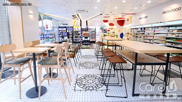 「!+? CAFE RESERVE」為7-ELEVEN的全新咖啡品牌,以驚嘆號與問號為品牌名,傳遞「驚訝且好喝到找不到文字形容的不思議咖啡」形象,共有義式咖啡、精品手沖、風味飲品、其他飲品等4大結構,價格帶在60~130元間,還有咖啡界香檳之稱的「藝伎咖啡」,單杯價高達220元;「糖果屋」獨創粉色系少女風格,加上3台馬車造型專櫃,擺設歐美熱銷、不敗肖像與日韓獨家等糖果商品。