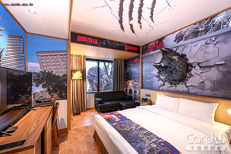 另外,隨著連假將近,各大旅宿平台同步推出特色選擇。Klook攜手4星級的格拉斯麗台北飯店,獨家開賣「哥吉拉主題房」,自9月起至2026年3月限時登場。以電影《哥吉拉-1.0》與《平成哥吉拉》為靈感,房內從牆面、床單到聲效均融入怪獸元素,並附贈限量典藏禮盒,為影迷帶來沉浸式體驗。