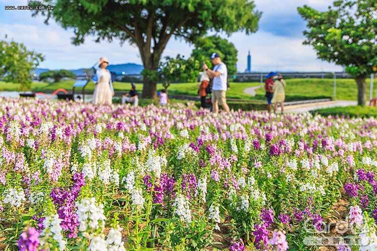 秋日時節遠離塵囂,走進大直的美堤河濱公園。台北市水利處在此規畫超過5萬盆草花,以雙色千日紅、天使花、小百日草交織出粉紅、桃紅與紫紅漸層,如同鋪展在河岸上的彩色地毯。