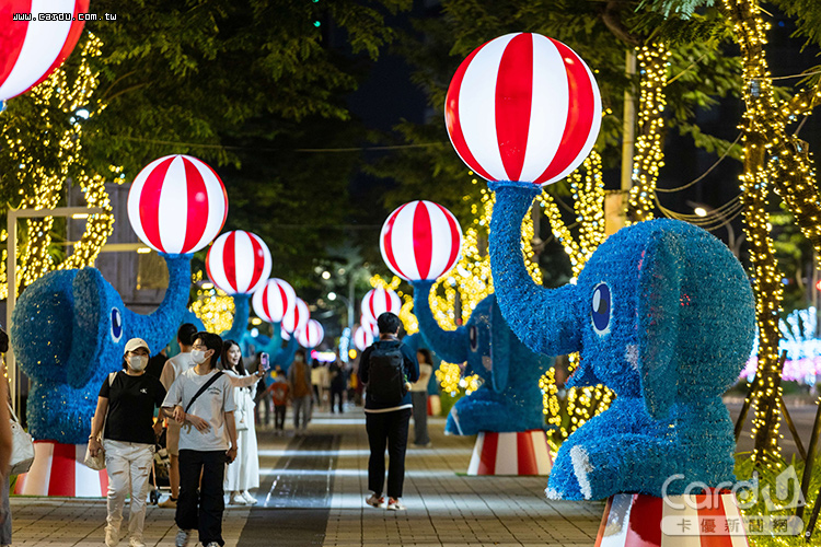 位於捷運板橋站南廣場的「耶誕精靈馬戲派對」、縣民大道人行道的「大象轉轉球」等燈區同步亮相,讓整座城市化為光影舞台。縣民大道至新府路口設置「馬戲砲彈聲光站」、「Popcorn戲院」與「耶誕驚喜小劇場」,分別以聲光特效、香氣與3D投影帶來多重感官體驗,讓民眾從視覺到嗅覺都沉浸於節慶氛圍。