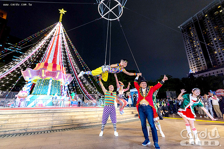 今(2025)年底最受矚目的「新北歡樂耶誕城」於今天正式啟動,由馬戲團開城秀揭開序幕。新北市長侯友宜化身馬戲團團長,與啦啦隊人氣女神李雅英及LINE FRIENDS角色兔兔共同亮相。今年與「LINE FRIENDS & LINE FRIENDS minini」聯手打造馬戲嘉年華主題燈區,串聯萬坪公園、府中商圈及車站周邊,形成城市級燈海。