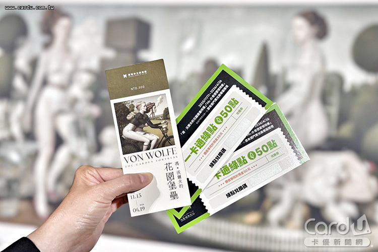 活動即日開跑,民眾持雙特展有價門票,就能到高美館1樓服務中心與內惟藝術中心服務櫃台兌換「一卡通綠點50點」專屬券,每個iPASS MONEY帳號限領取2組序號,可用於折抵乘車金或在指定綠色通路消費。在高美館櫃台加入高美館官方LINE帳號「KMFA Friends」、進行「藝術永續生活挑戰」問答,同時出示已登入一卡通iPASS MONEY APP的手機畫面,還能拿到「可愛造型一卡通」。