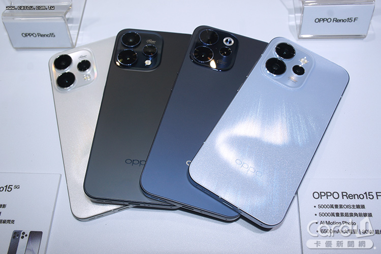 OPPO Reno15系列手機共有Reno15 Pro Max、Reno15 Pro、Reno15與Reno15 F共4款機型。Pro Max與Pro機型鎖定專業影像創作者,使用2億畫素主鏡頭、3.5倍長焦氛圍人像、5,000萬畫素100度超廣角前鏡頭,具備4K HDR錄影功能,加上6.78吋、6.32吋螢幕,不僅攝影更方便,也能滿足大螢幕愛好者。