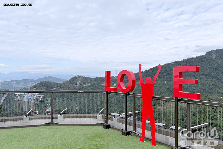 若想避開市區人潮,不妨搭乘貓空纜車前往「天空綠洲Sky Green」平台觀景。平台位於貓空站屋頂,可遠眺台北盆地與茶山景致。「為愛歡呼」LOVE裝置與大紅色台北地標成為熱門打卡點,退役纜車車廂改造為休憩空間,欄杆上的「貓家族」雕塑增添山城溫度。現場「鏡頭君」裝置可即時分享山景畫面,與親友同步感受貓空風景。